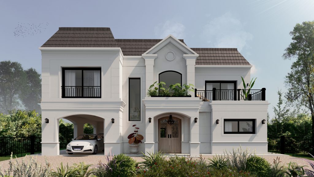 Esta propuesta arquitectónica está concebida como la unión perfecta entre la atemporalidad formal y la vida moderna. La residencia proyecta una imagen de elegancia a través de su fachada de Estilo Francés, caracterizada por sus proporciones clásicas, cubiertas sofisticadas y detalles que aseguran una presencia imponente.